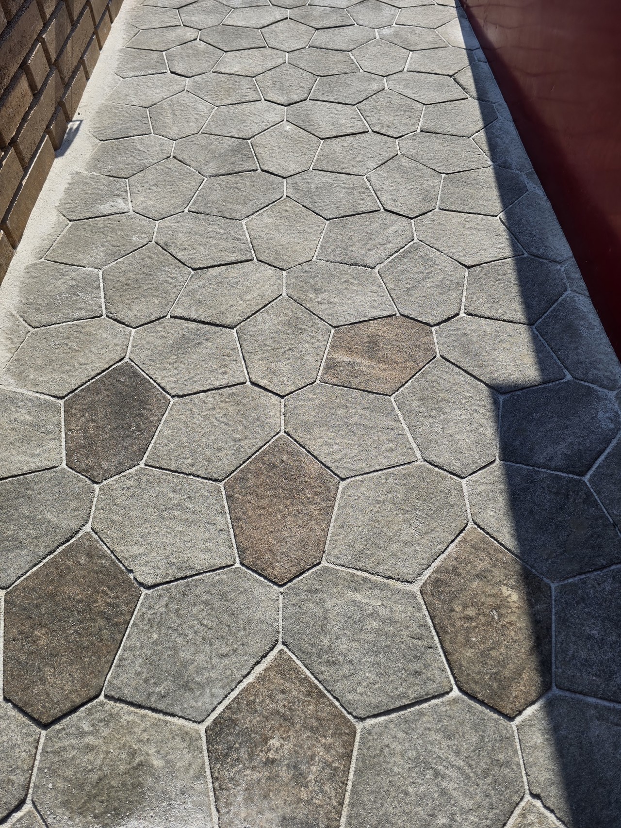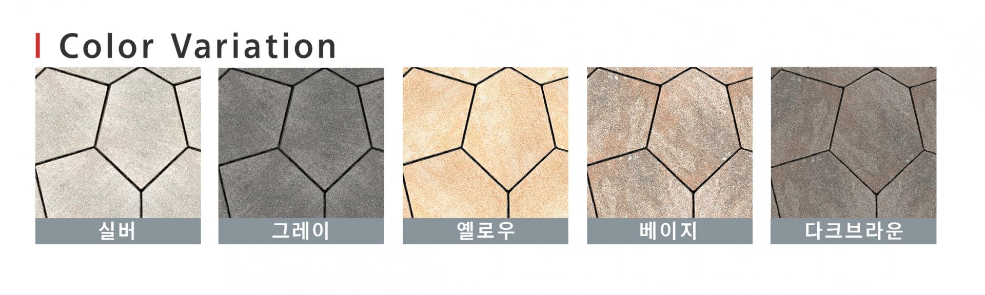 정교하게 설계된 다각형 구조와 표면 가공 기술을 적용한 신개념 디자인 포장재로 기존 인조사암 부정형 블록의 시공 비효율을 개선하고 난석 스타일의 자연스럽고 품격있는 석재 포장 분위기를 연출합니다.